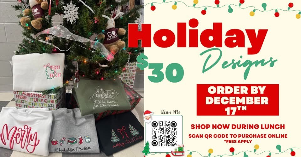 Get cozy, get festive, and thank you for supporting our School-Based Enterprise, The Cougar Shop! ❤️🐾💚