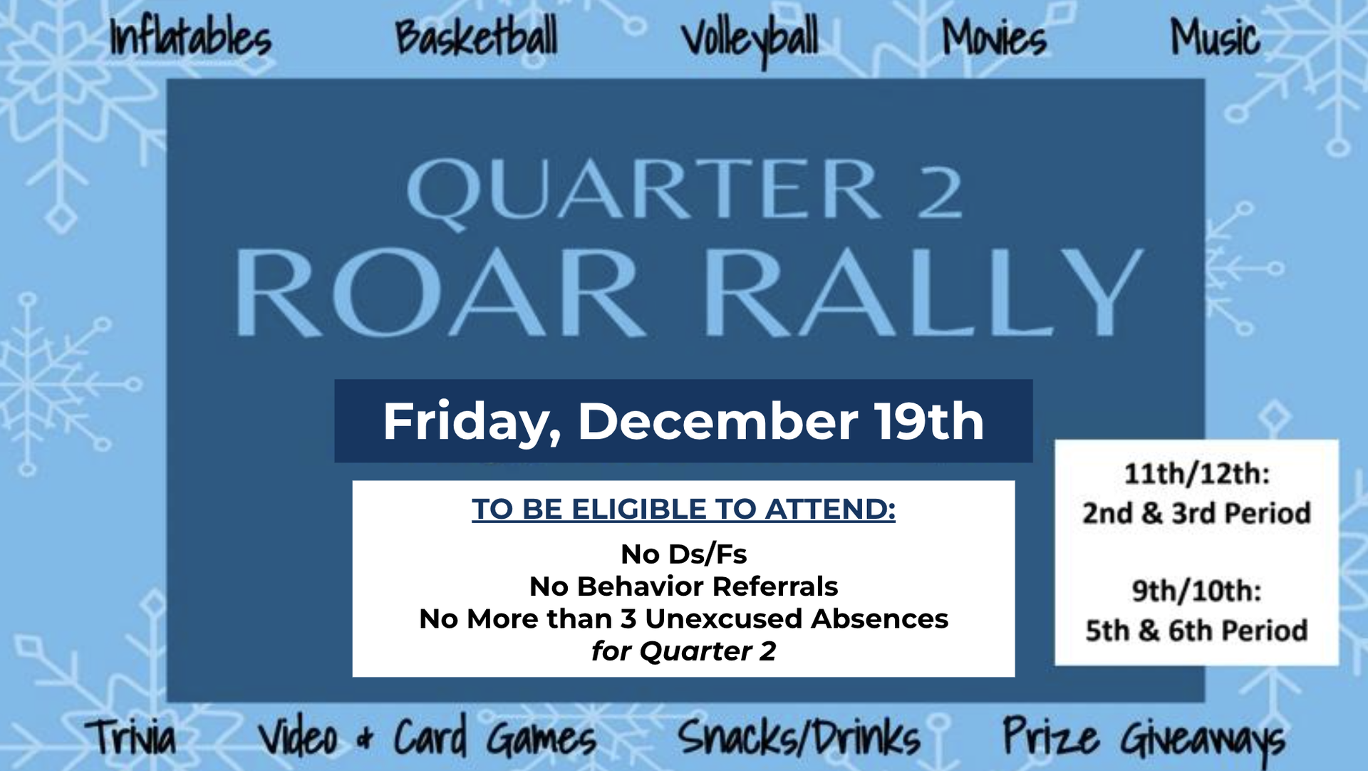 – Staff Masked Singer/Heart of BC Awards - 1st Period; Quarter 2 ROAR Rally - 2nd/3rd: