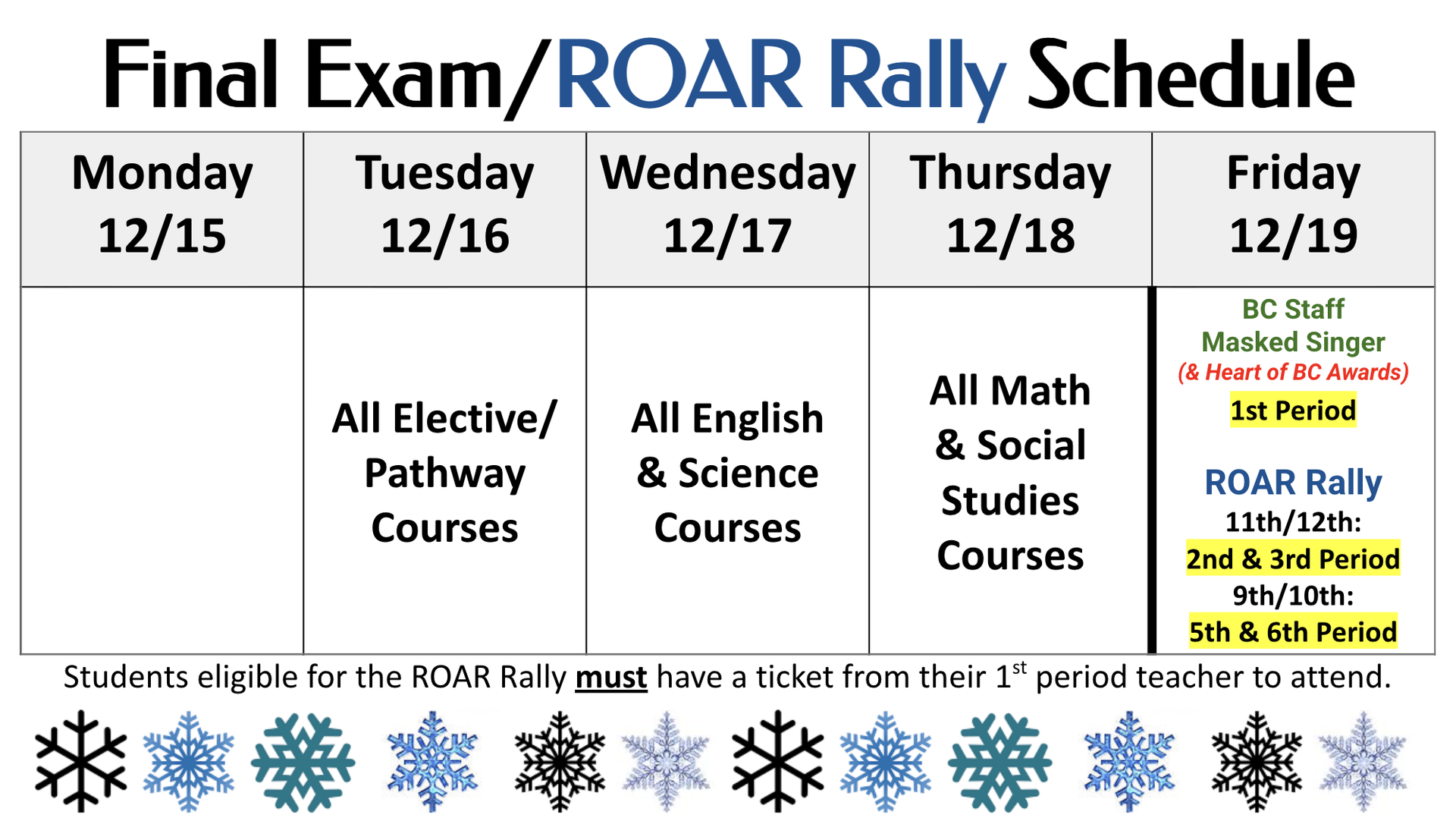 📅 Tuesday, 12/16 All Elective and Pathway Courses will take final exams.
