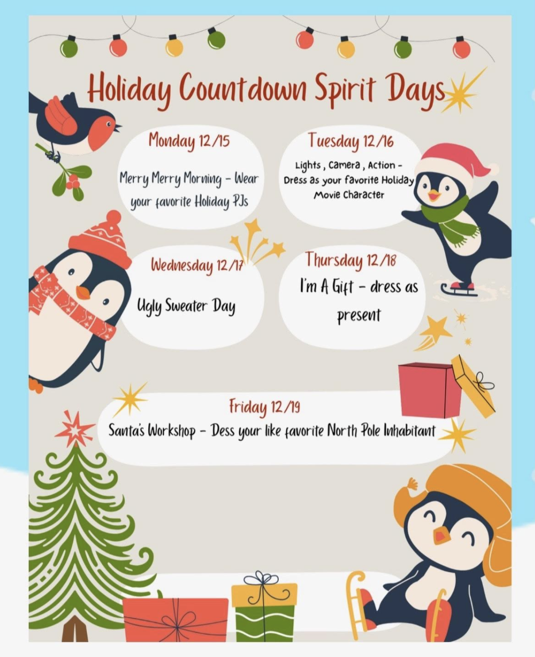 🎄 Holiday Countdown Spirit Days! 🎁 |