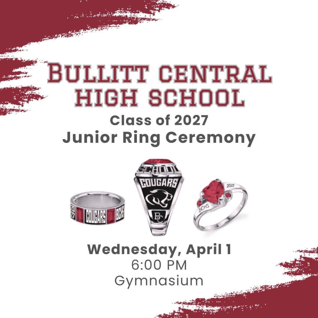 Bullitt Central High School is proud to celebrate an important milestone for our juniors at the upcoming Class of 2027 Junior Ring Ceremony. π