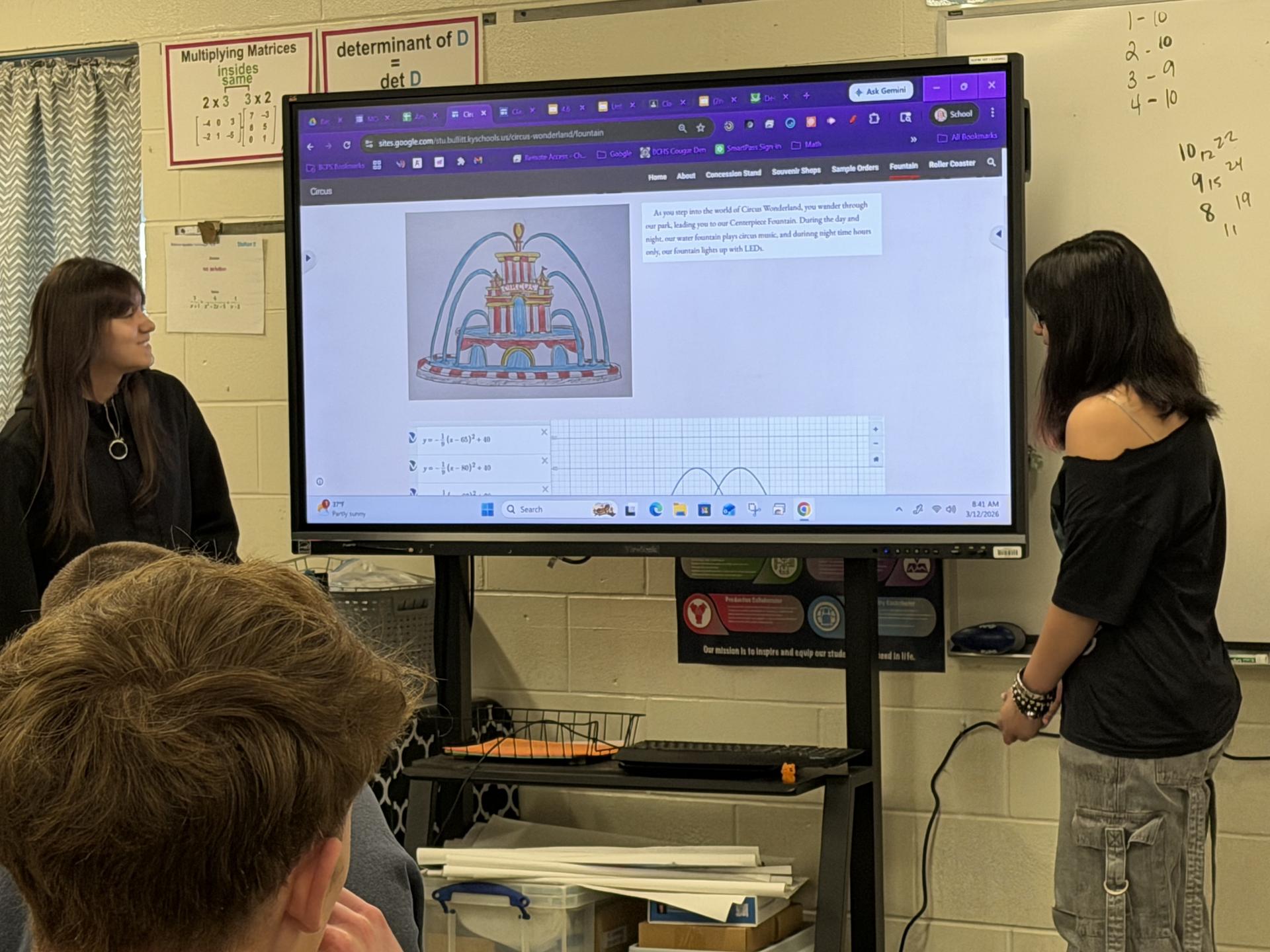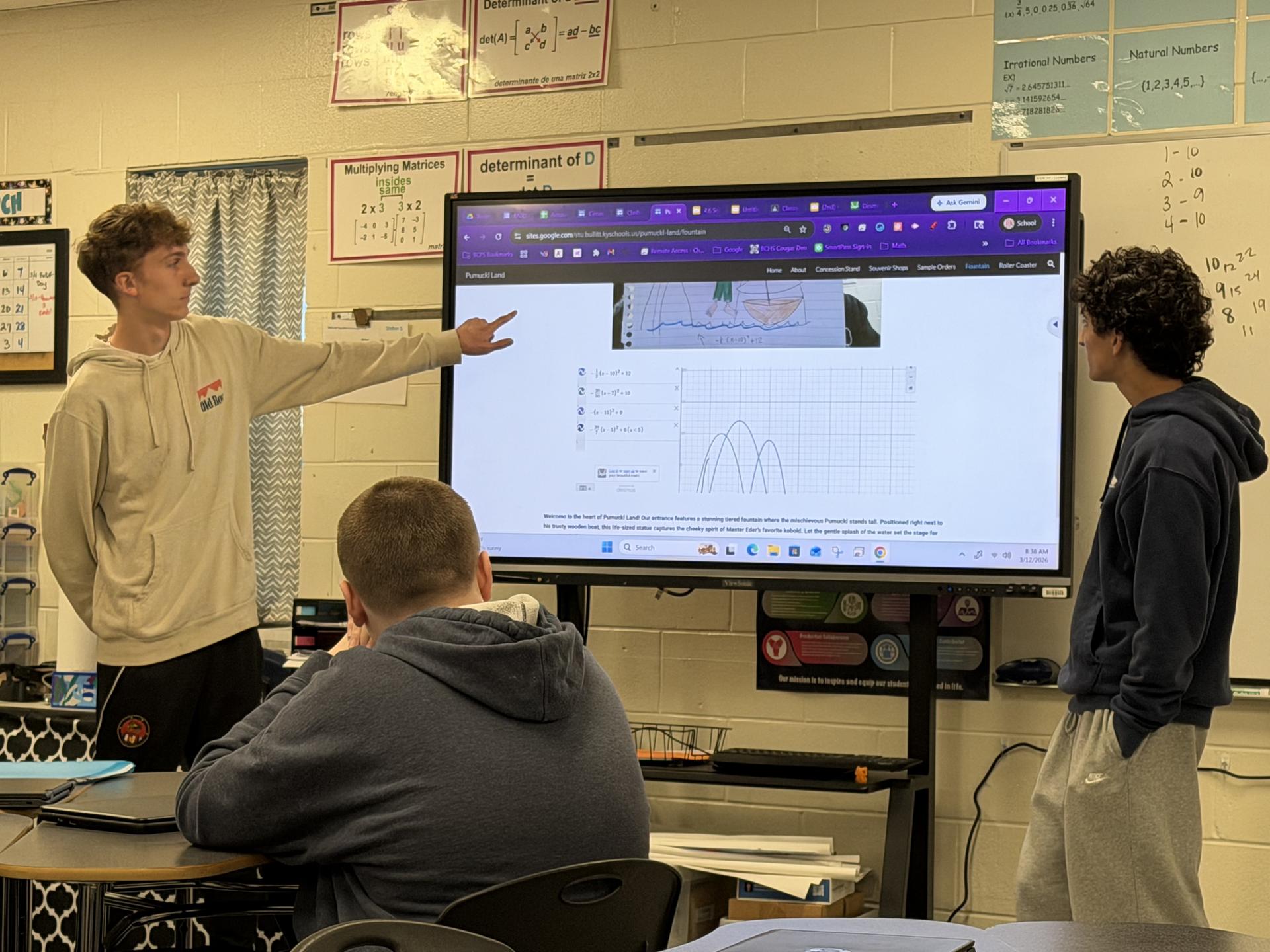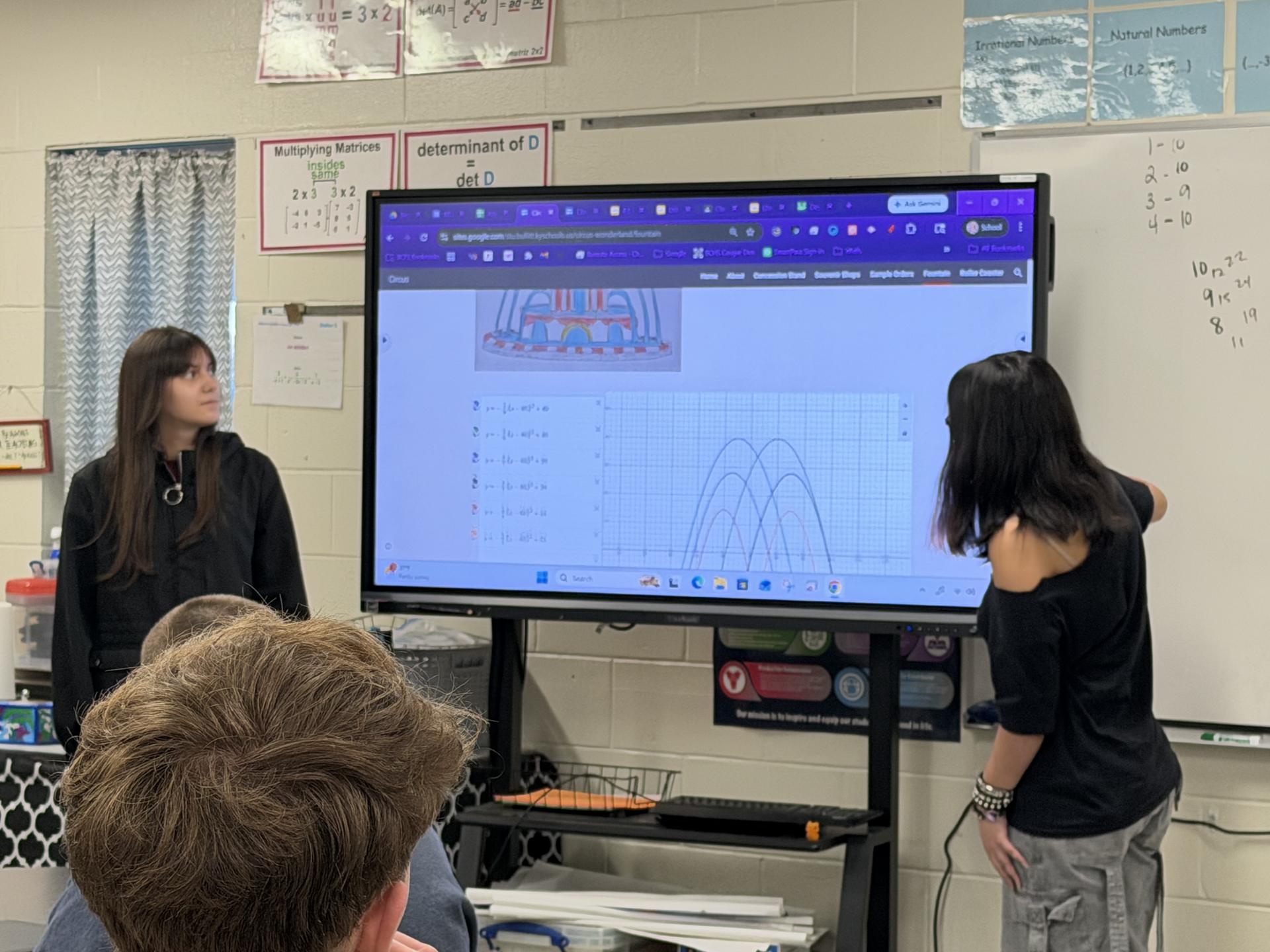 As part of a year-long, ongoing amusement park theme project, Honors Algebra 2 students are designing different attractions for the amusement parks their groups have created. This week, students applied what they recently learned about quadratic equations to design and build fountains for their parks. Students then presented their fountains and explained the math behind the design of their quadratic functions.