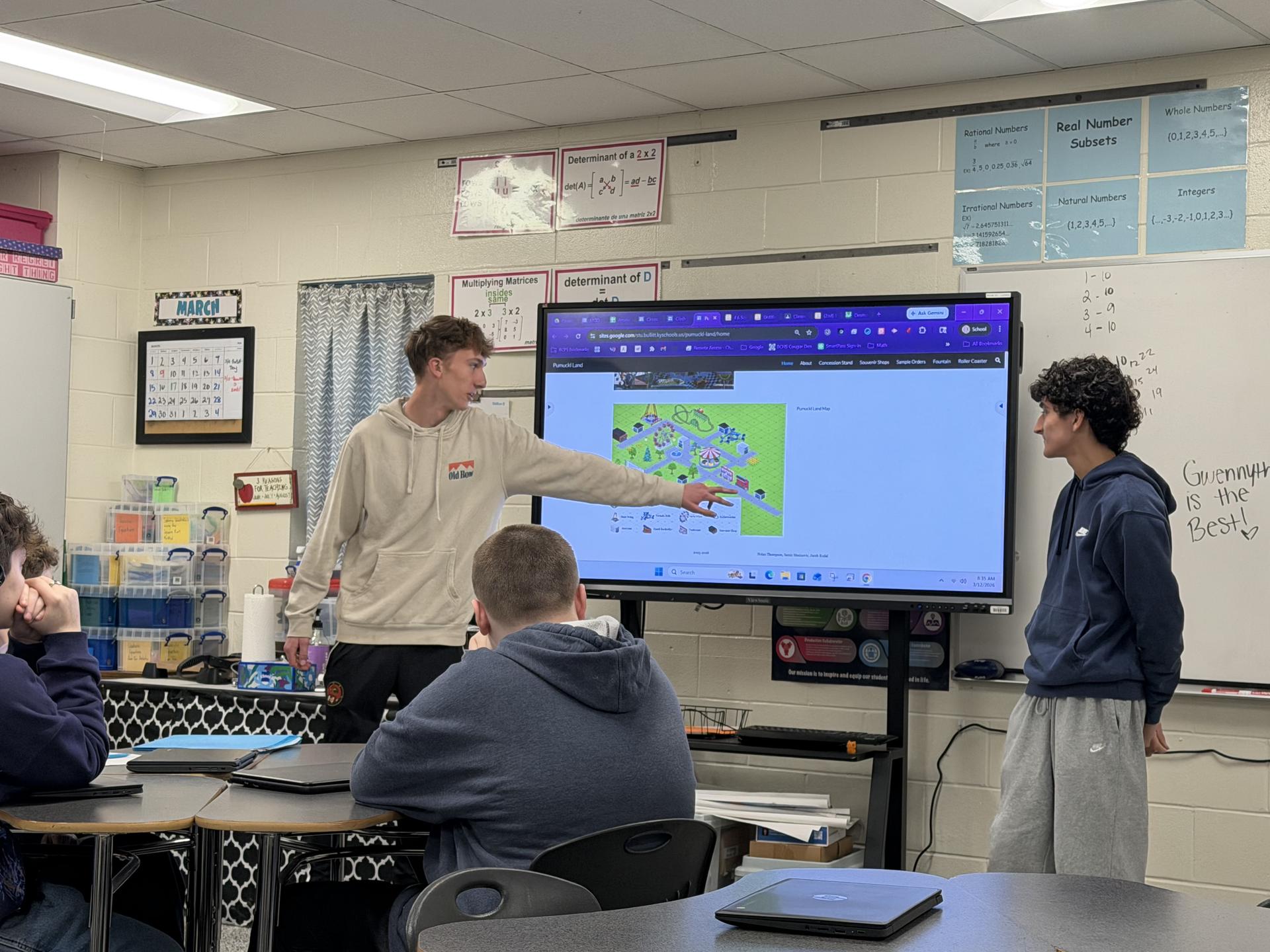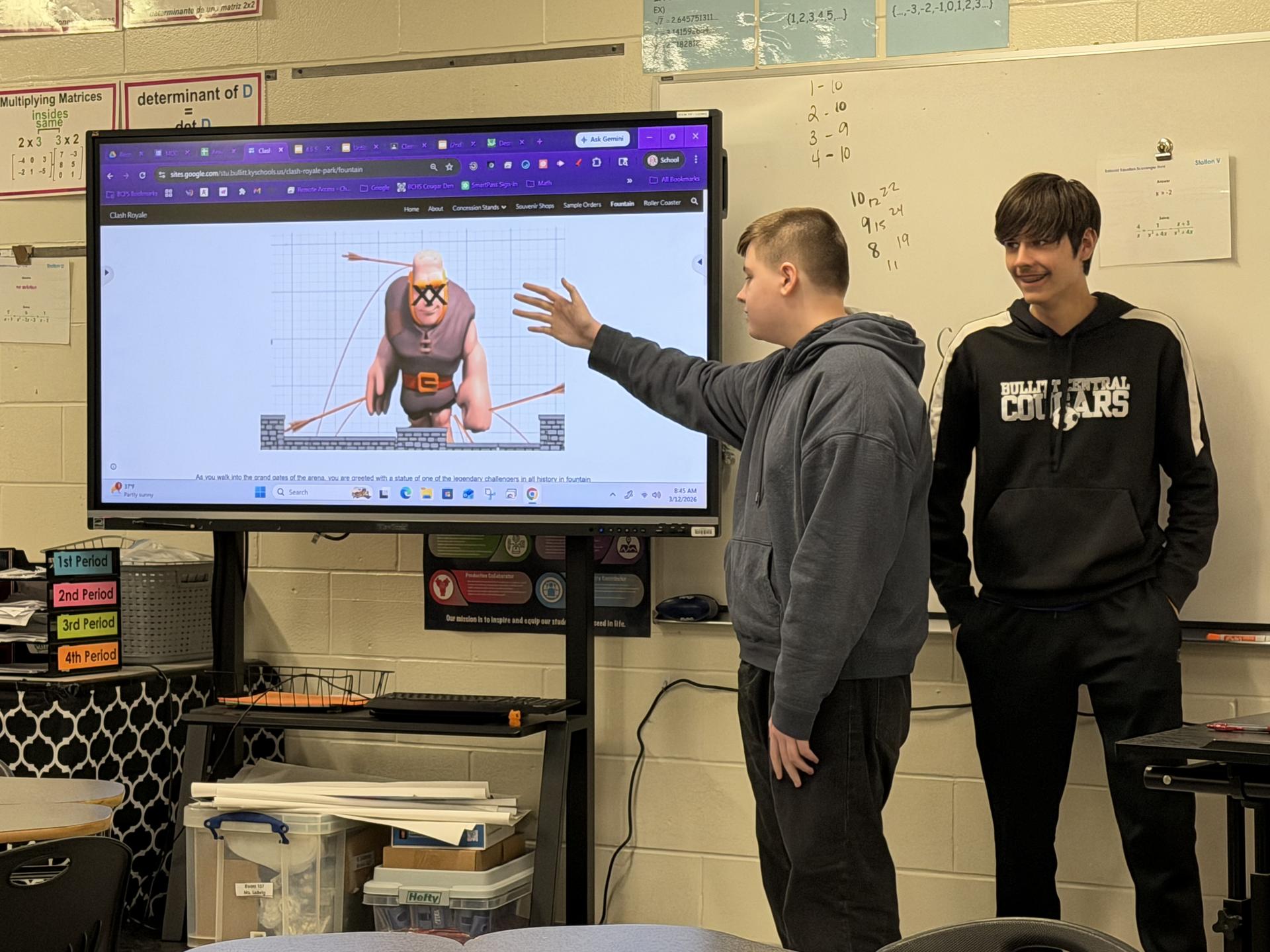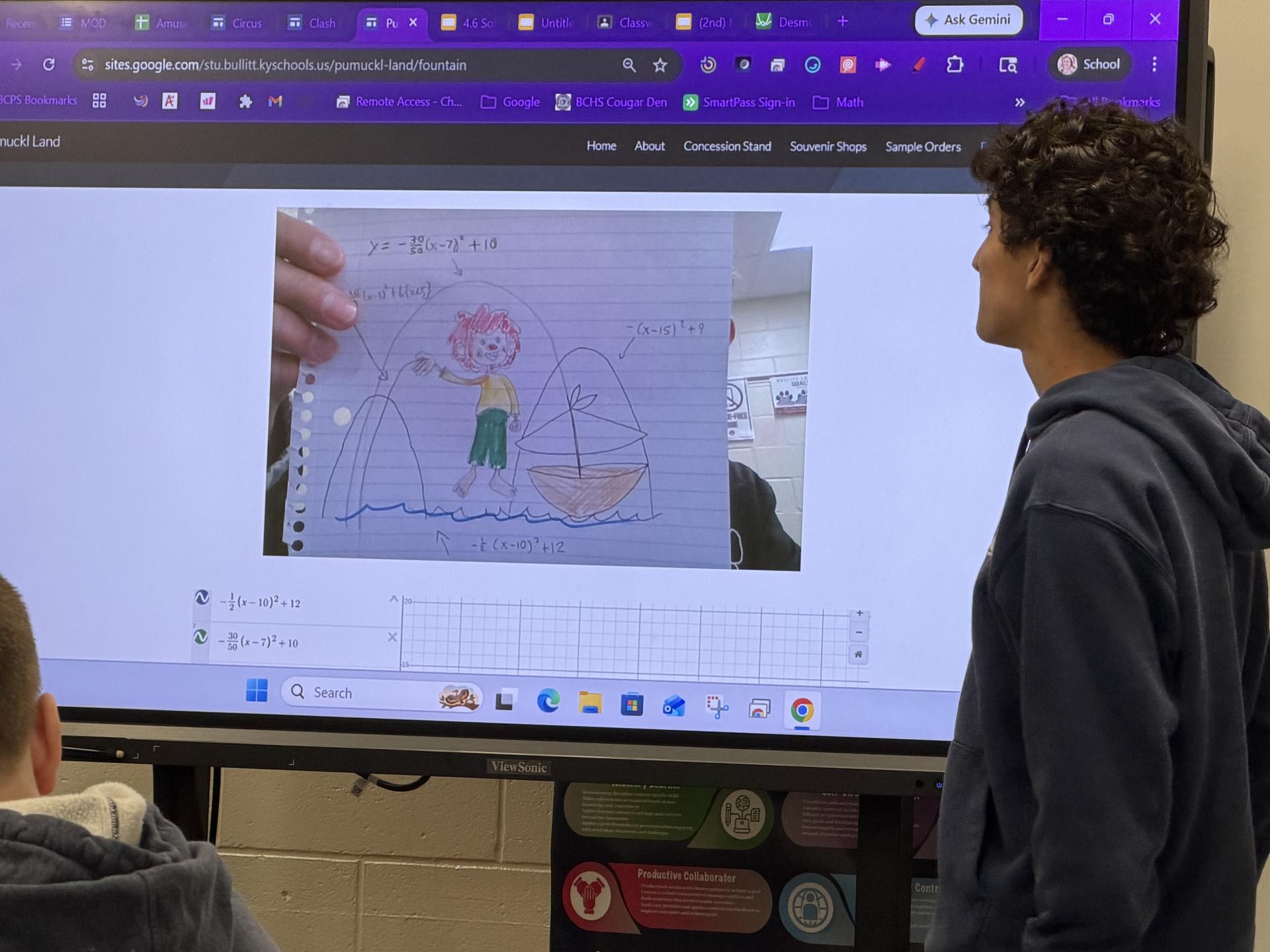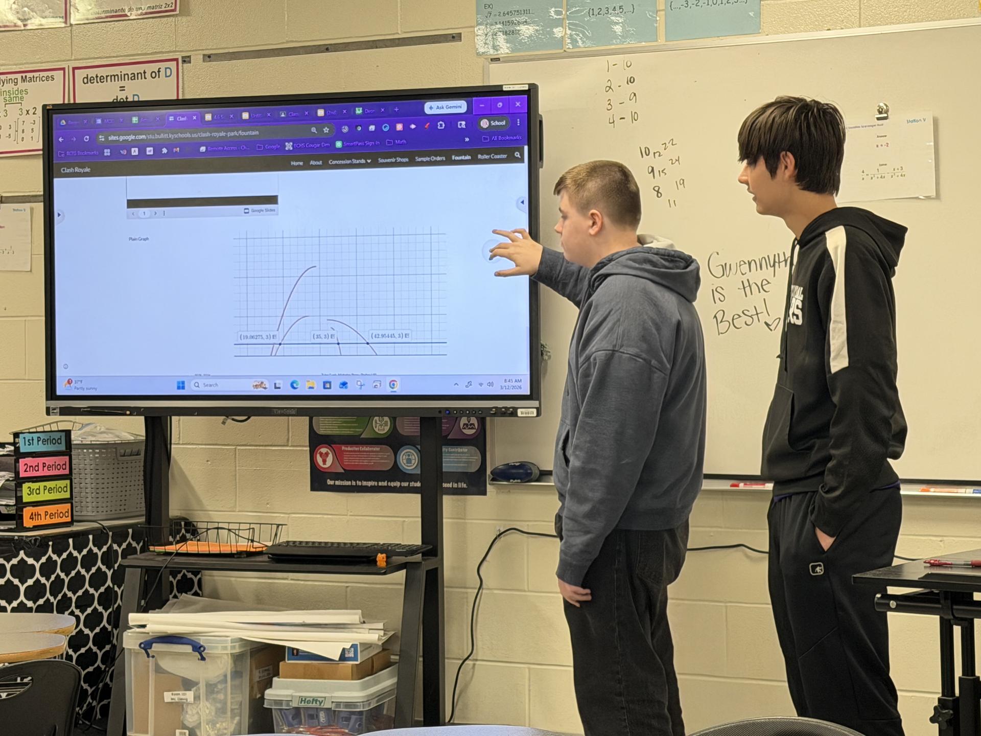 As part of a year-long, ongoing amusement park theme project, Honors Algebra 2 students are designing different attractions for the amusement parks their groups have created. This week, students applied what they recently learned about quadratic equations to design and build fountains for their parks. Students then presented their fountains and explained the math behind the design of their quadratic functions.