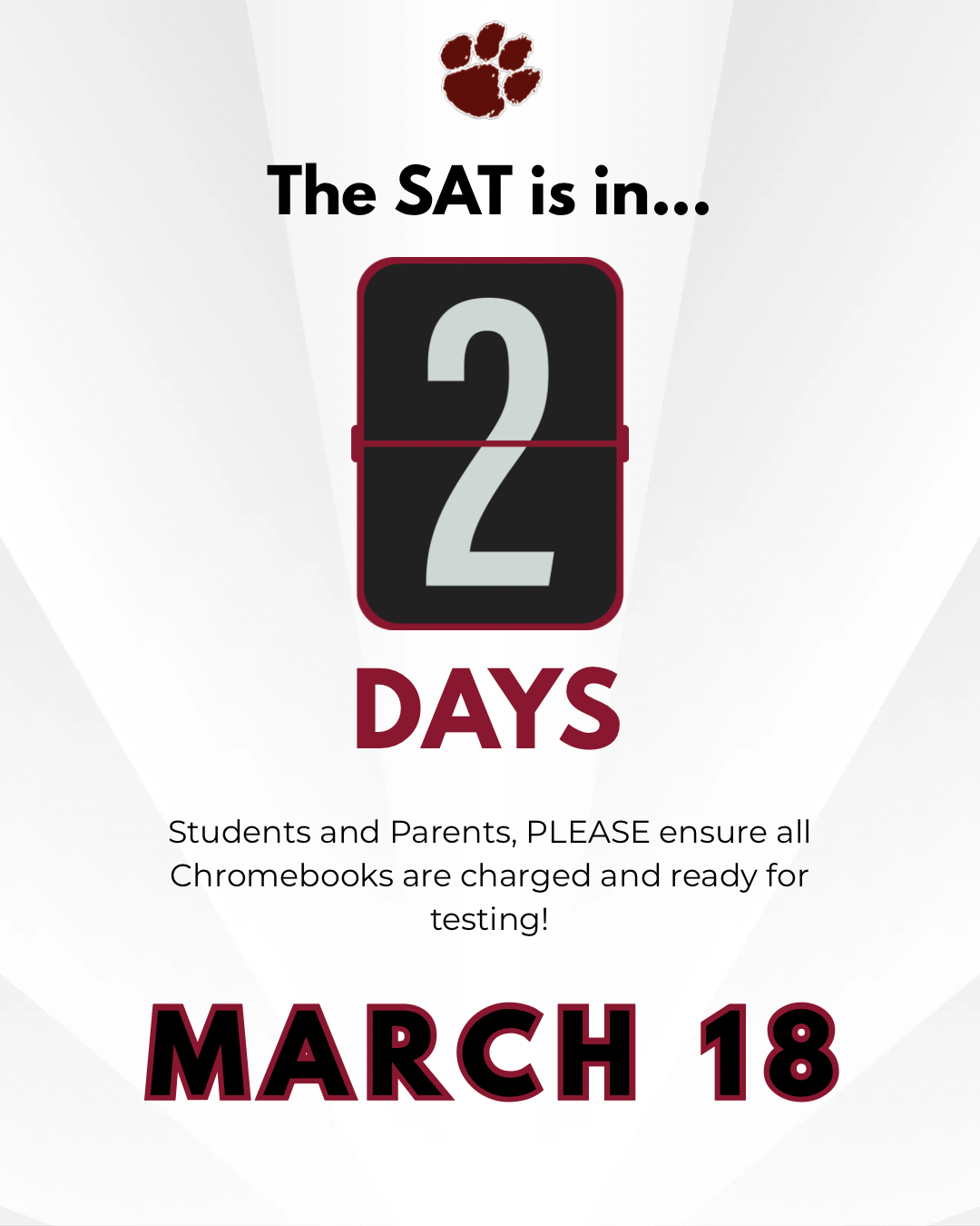 The SAT will take place on March 18, and it is an important opportunity for our juniors to demonstrate their learning and open doors for postsecondary opportunities. Families can support their students by reminding them of the importance of: