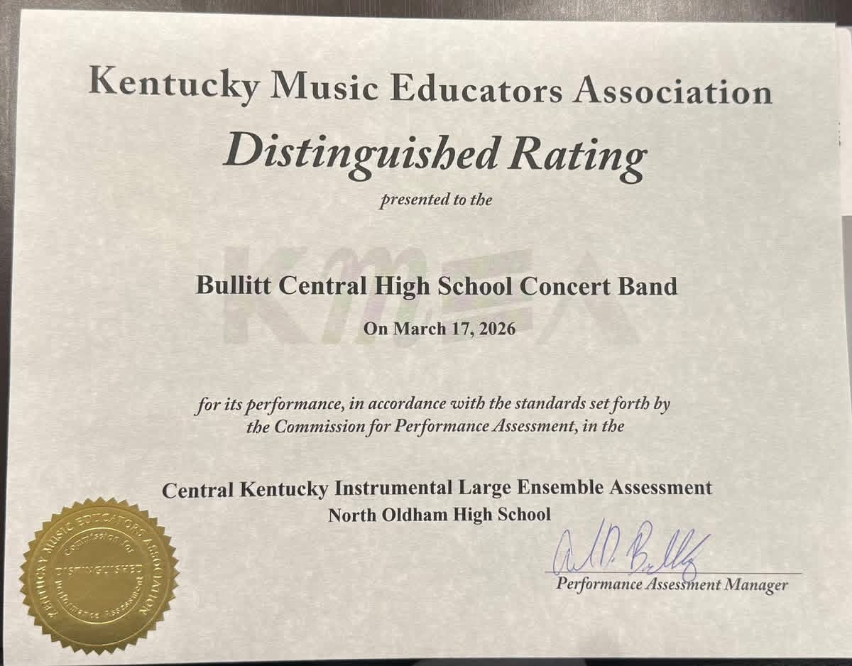 A huge congratulations to our Bullitt Central Band, led by Mr. Beeny! Their dedication, discipline, and countless hours of hard work truly paid off at KMEA today, where they earned a DISTINGUISHED rating!!! ππΆ