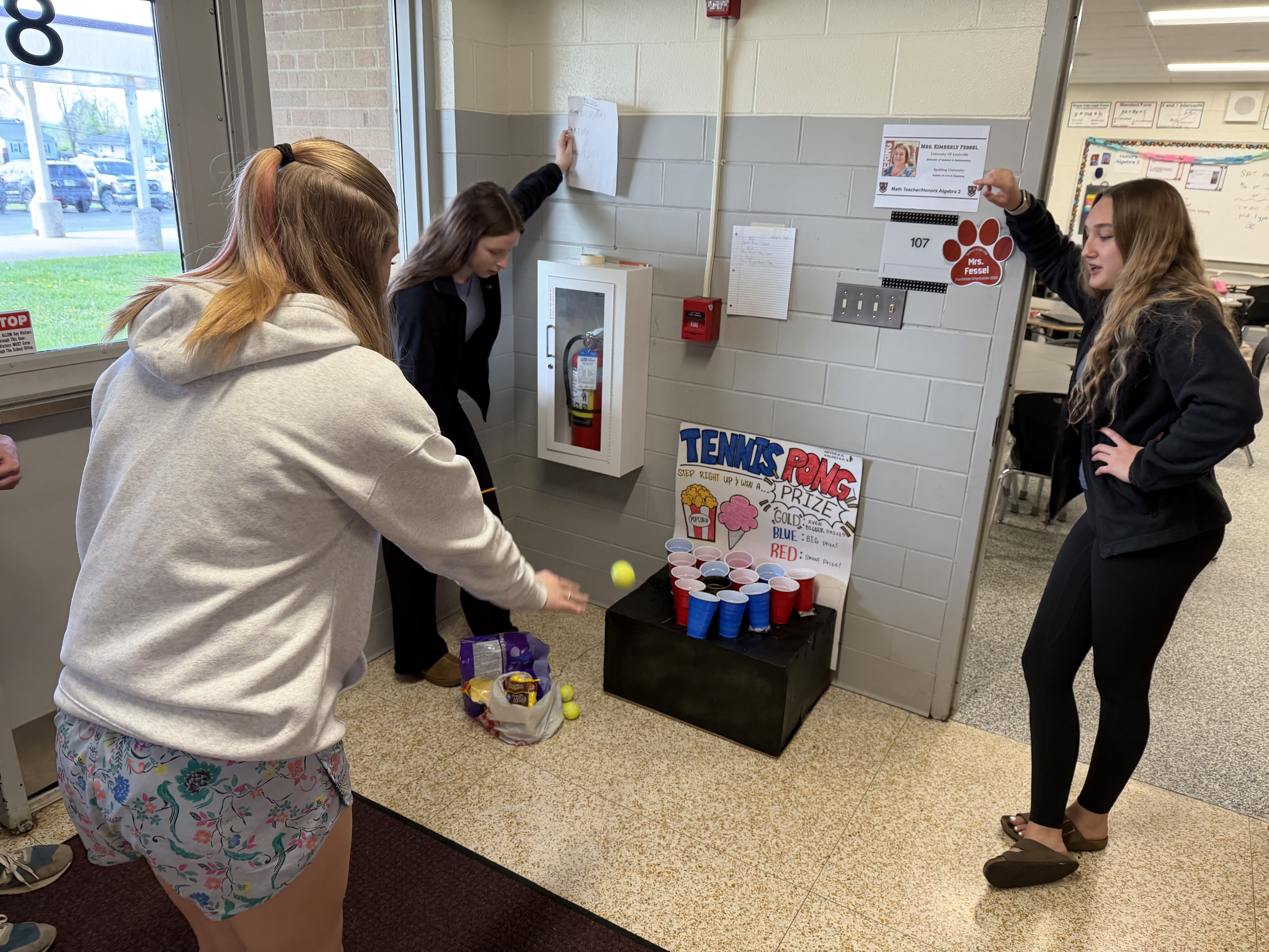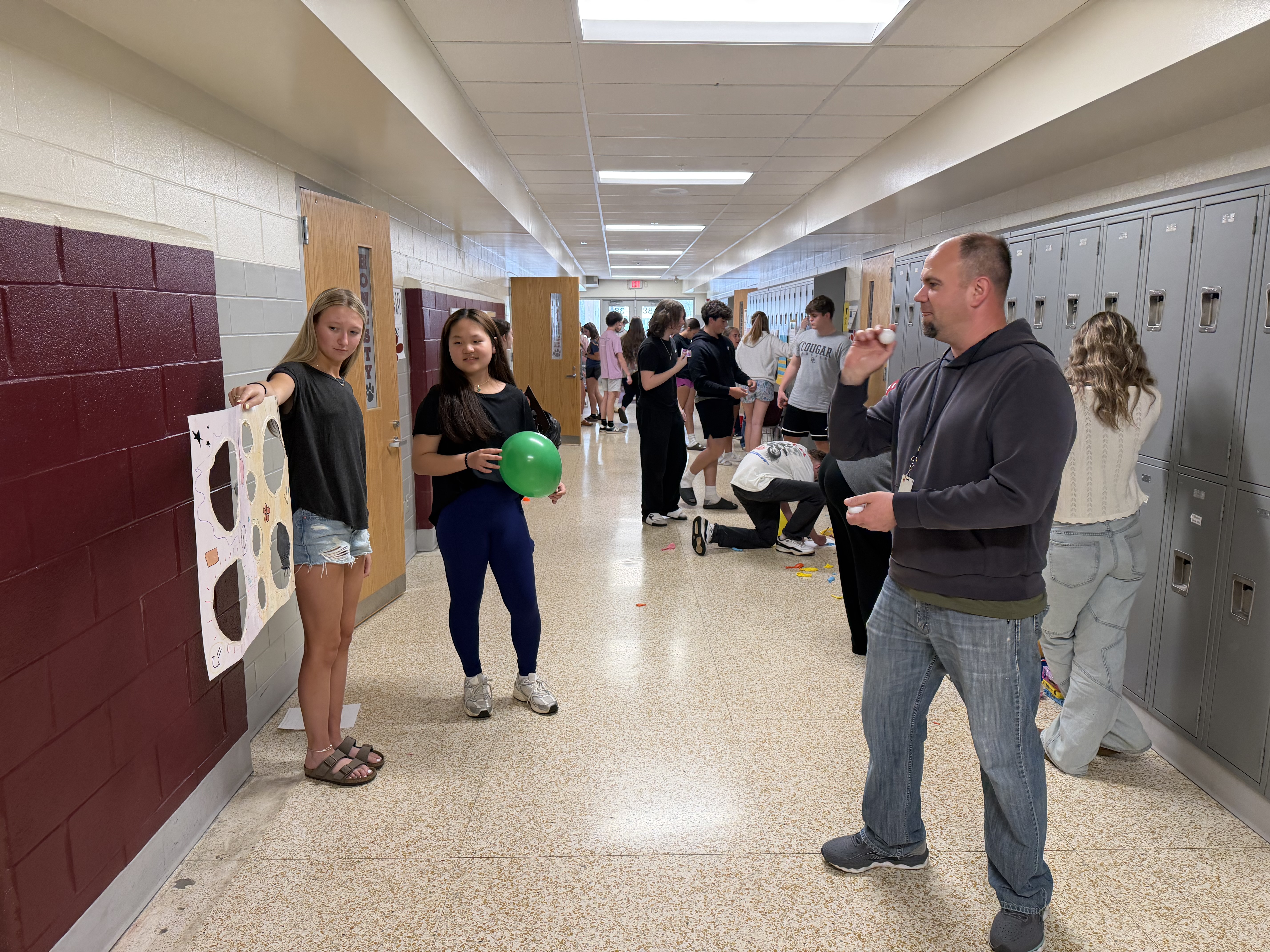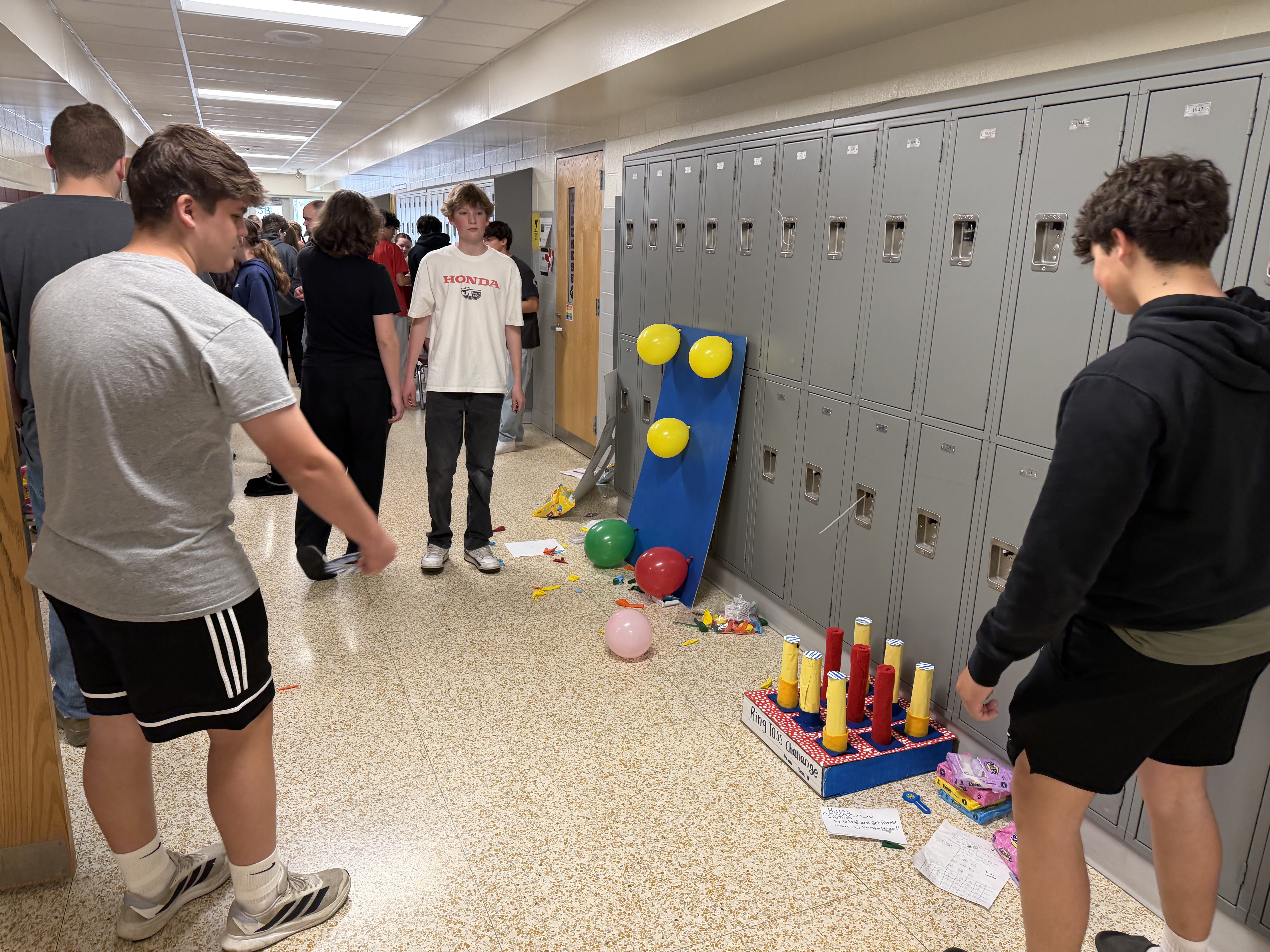 Math meets fun in Mr. Juberg’s Geometry class! Students designed and built their own carnival games, calculated the geometric (theoretical) probability of winning, then invited classmates to play to determine the experimental probability.