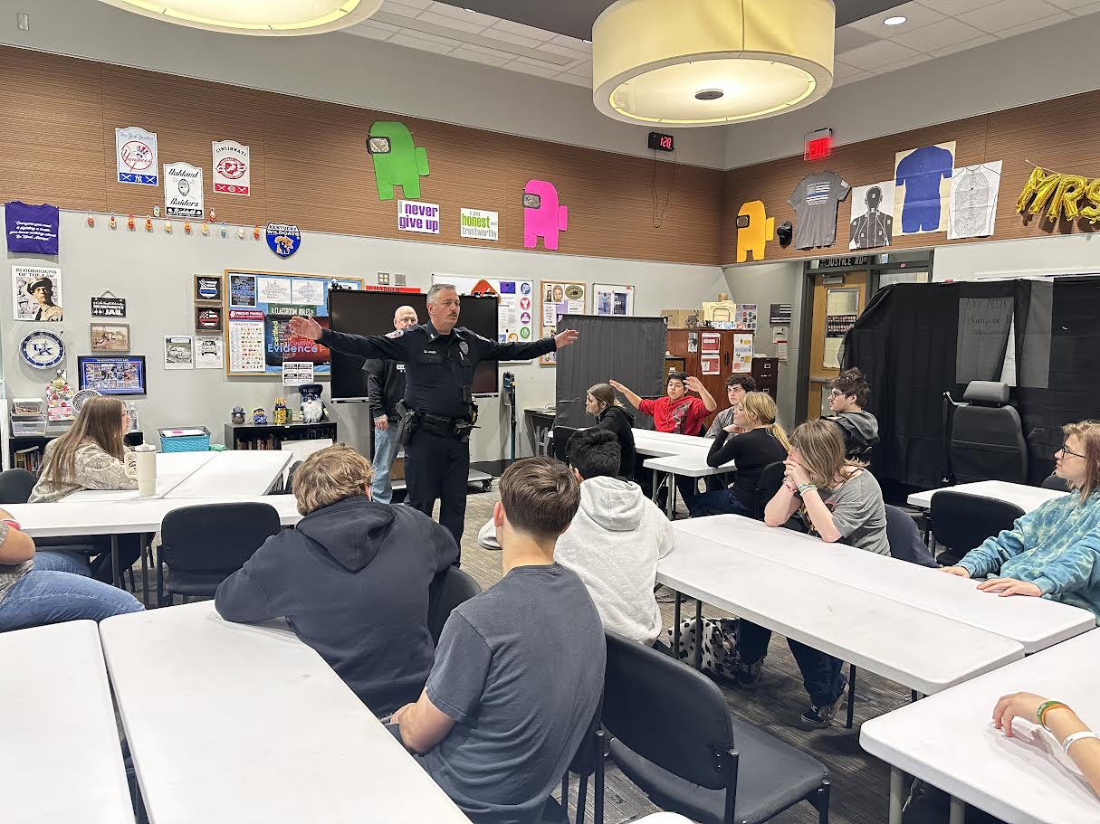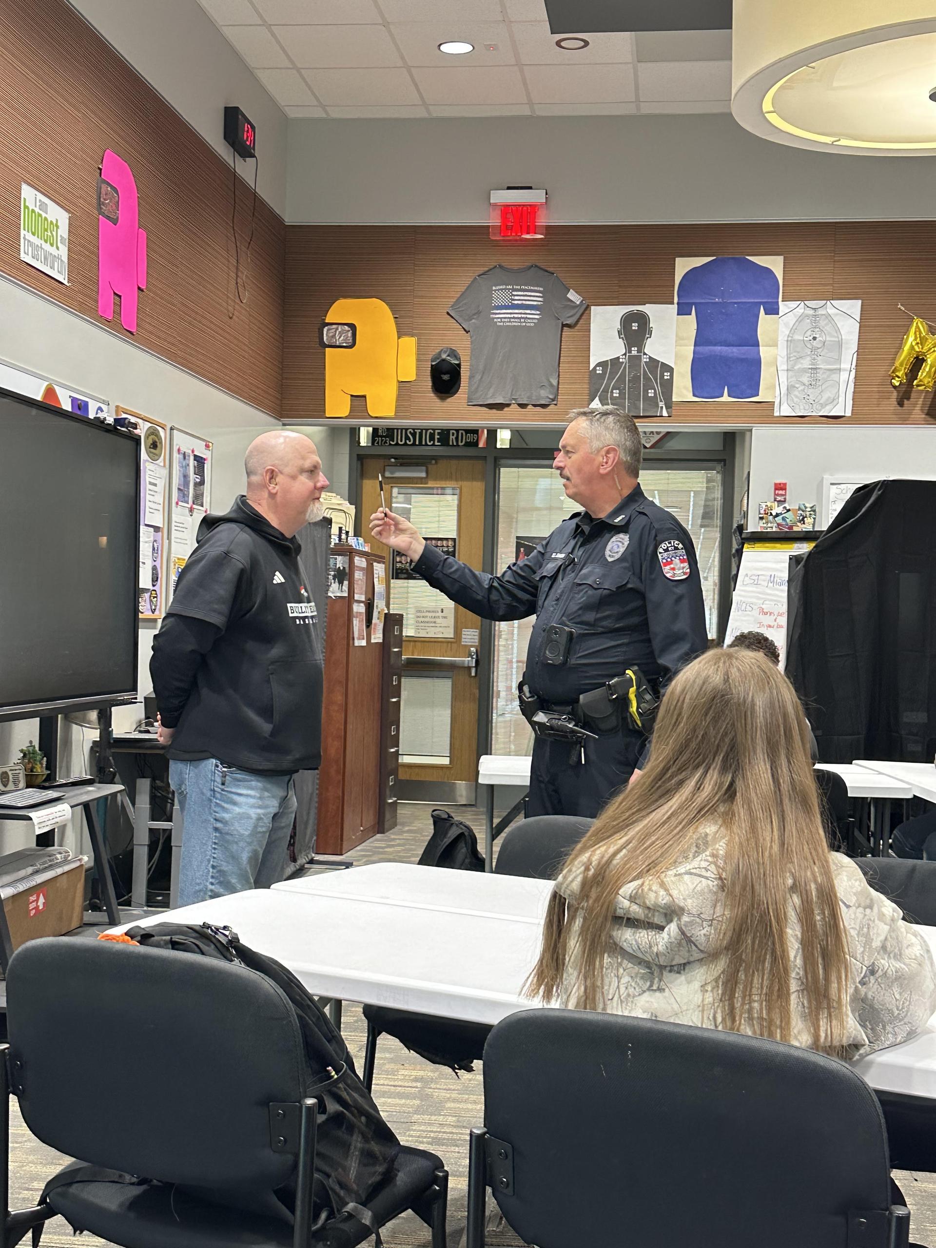 Law Enforcement classes have been learning about traffic stops and field sobriety tests. Today Officer Johnson is teaching my students field sobriety tests....it's always a good thing for students to learn from an expert!!! |