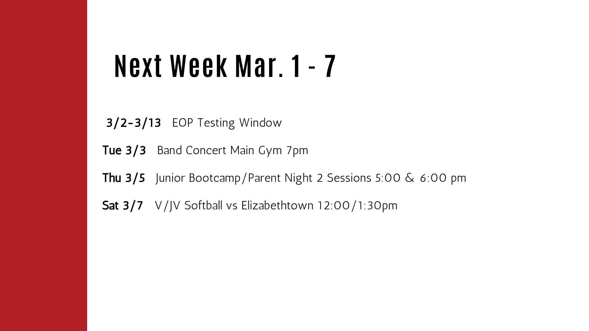 Weekly Morning Announcements |
