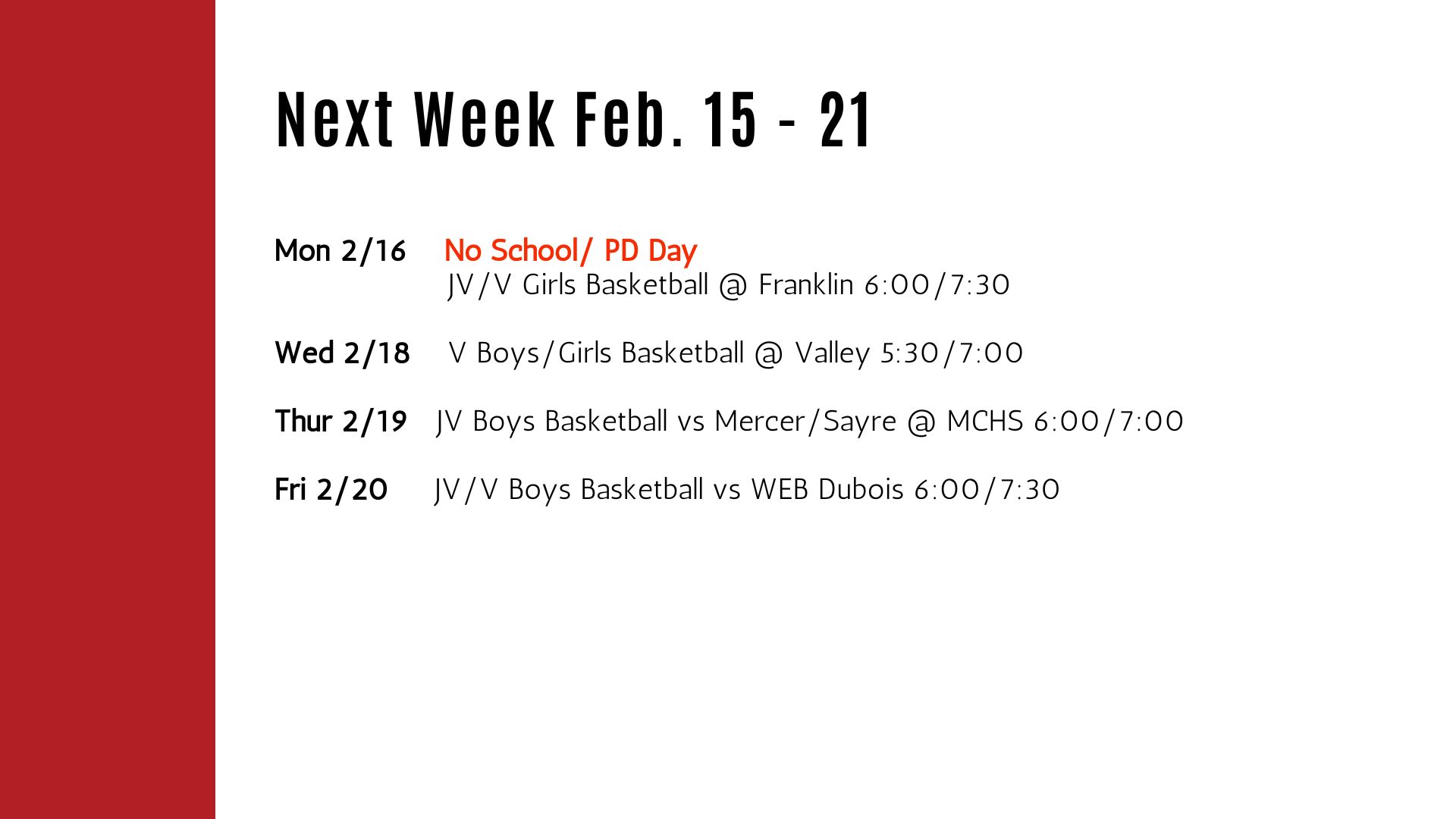 Monday: No School (Enjoy the long weekend!)