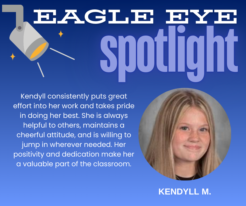 This week's spotlight goes to one of our 8th graders on the Quest team. Great job, Kendyll!