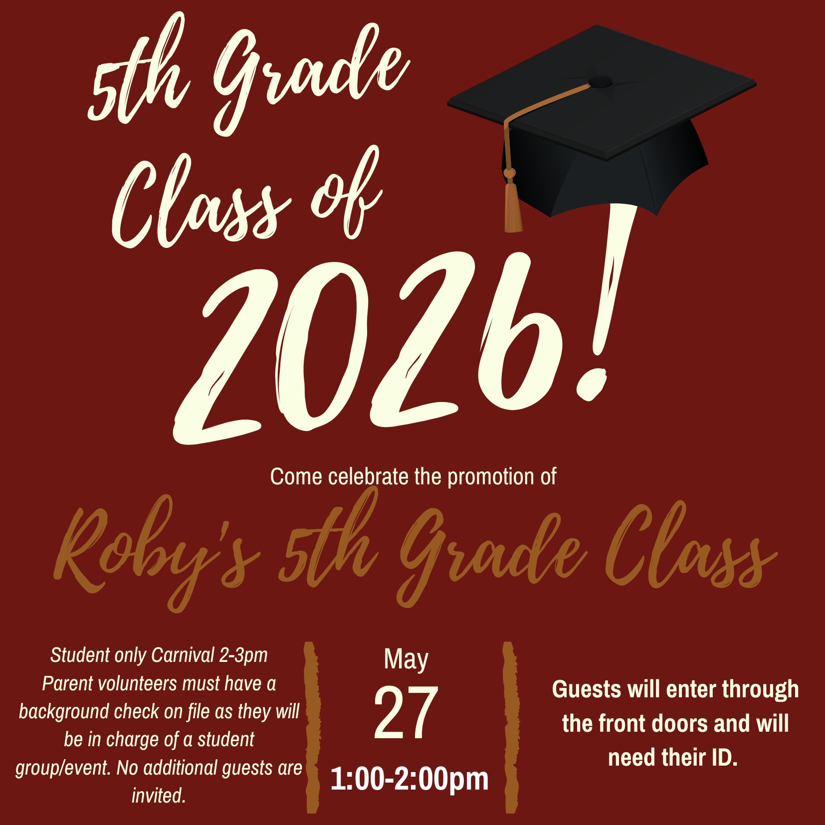 - 5th Grade Promotion- Wed. May 27th @ 1pm